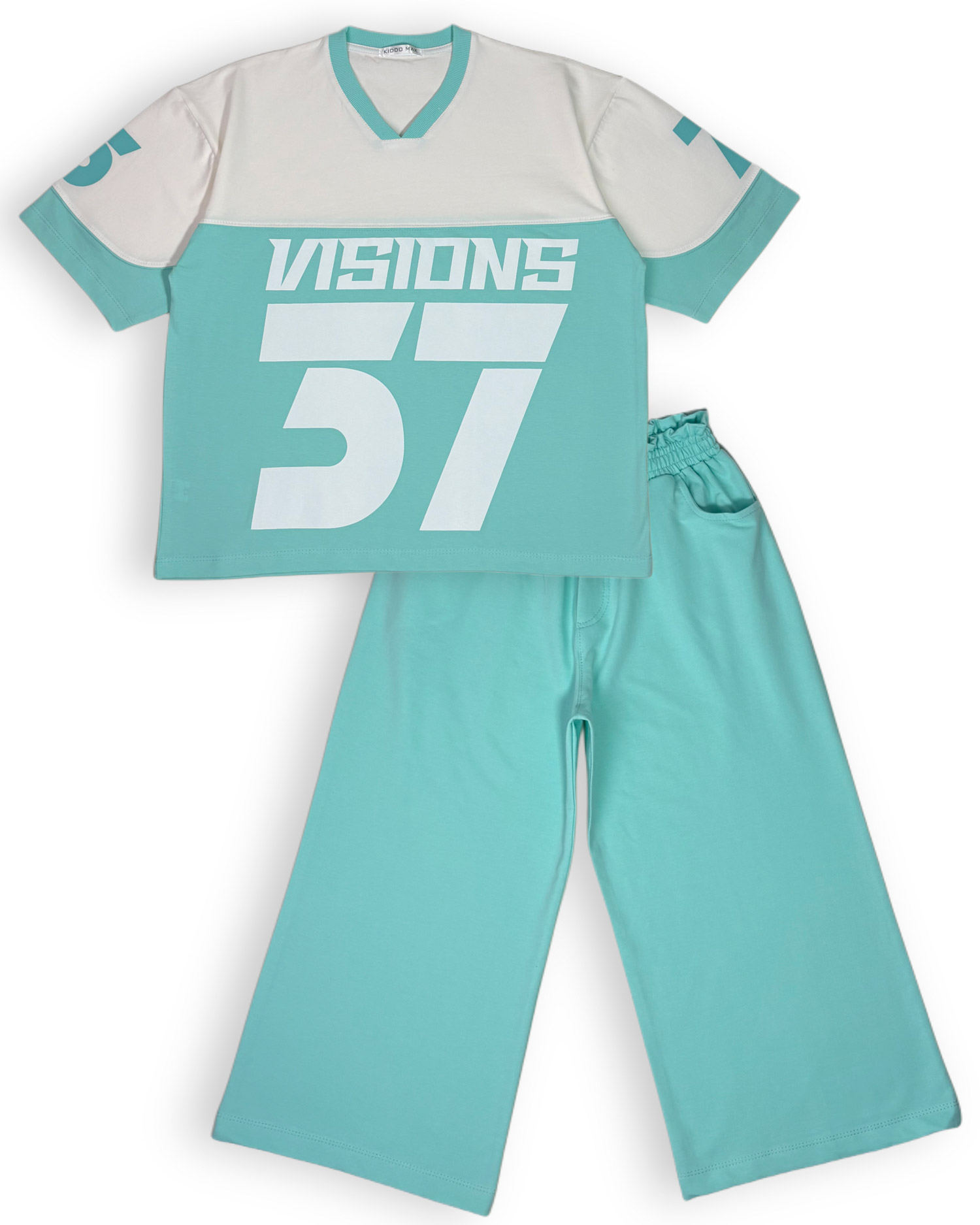 ست تیشرت شلوارک برمودایی دخترانه طرح Visions کد 04145