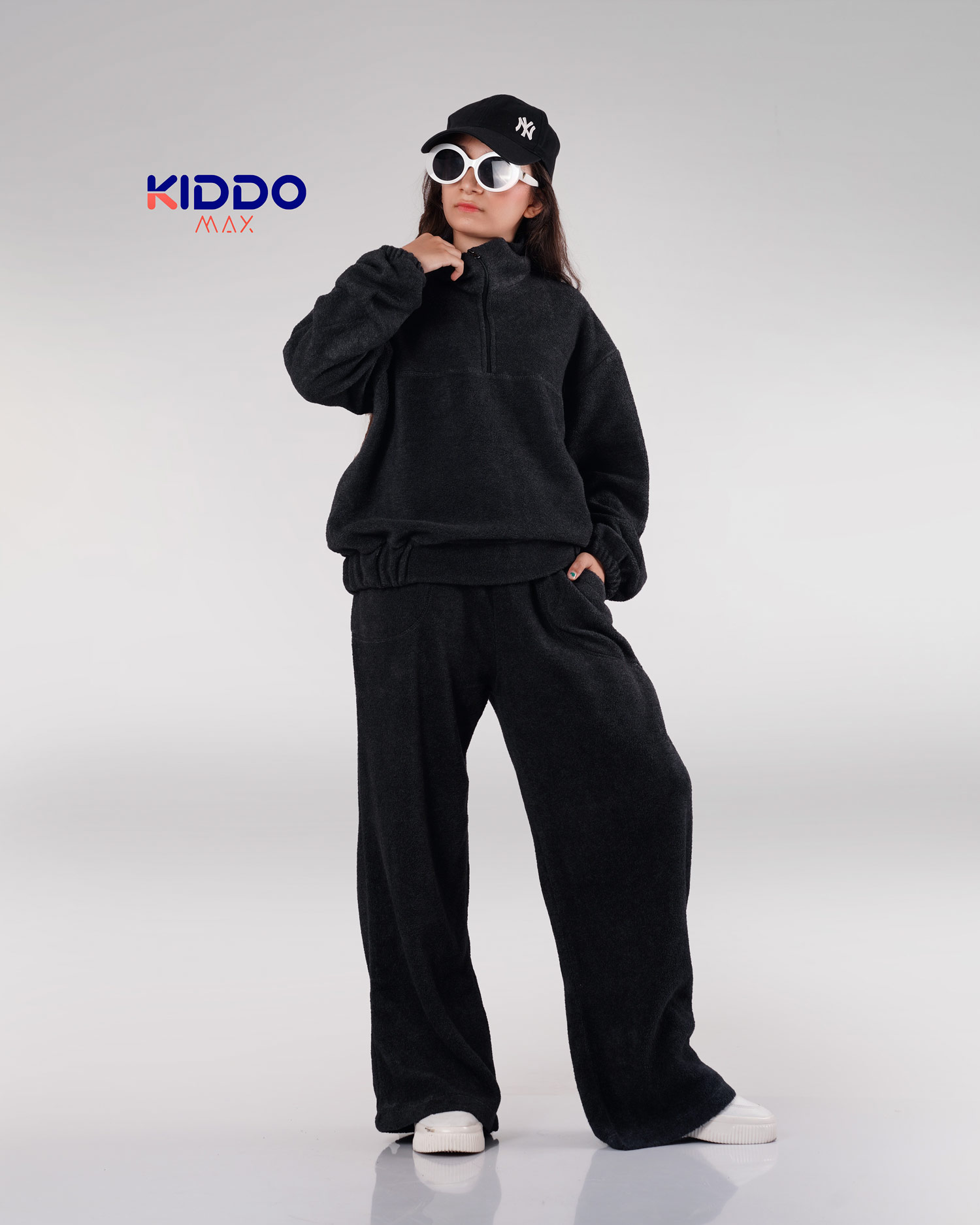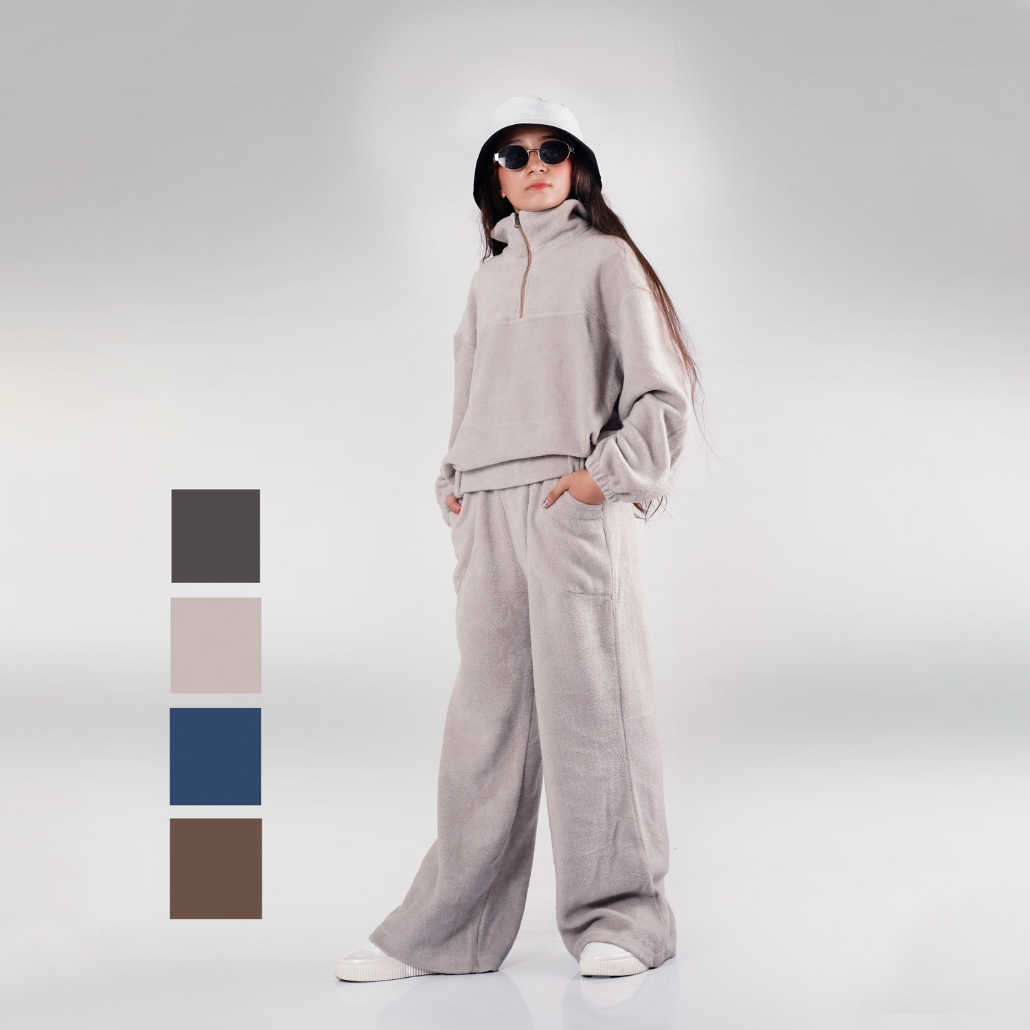 بلوز شلوار دخترانه یقه نیم زیپ پارچه پولار فلیسدر کد 04500